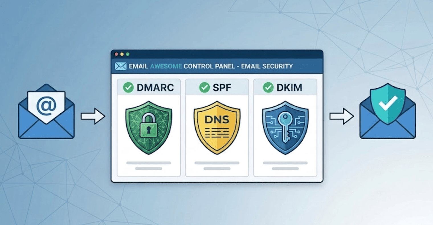 DMARC (Domain-based Message Authentication, Reporting, and Conformance) sits on top of SPF and DKIM. It tells receiving servers what to do when authentication fails, and it sends you reports so you can see exactly what's passing and what isn't. Your DMARC policy options are p=none (monitor only), p=quarantine (send to spam), or p=reject (block entirely).